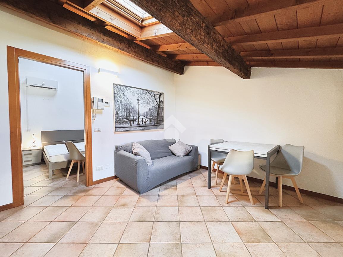 GIARDINO GIUSTI - In piccola palazzina bilocale posto all'ultimo piano mansardato con soggiorno, angolo cottura, camera e servizio finestrato. Posizionato su tranquille corti interne è comodo a tutti i servizi ed al centro storico. Il mobilio interno è nuovo e le travi a vista garantiscono un'atmosfera accogliente. Termoautonomo e condizionato con pompa di calore. Contratto a lungo termine, canone comprensivo di spese condominiali, utenze a parte da intestare. Richiesto contratto di lavoro a tempo indeterminato, si prega di indicare nella richiesta le referenze.